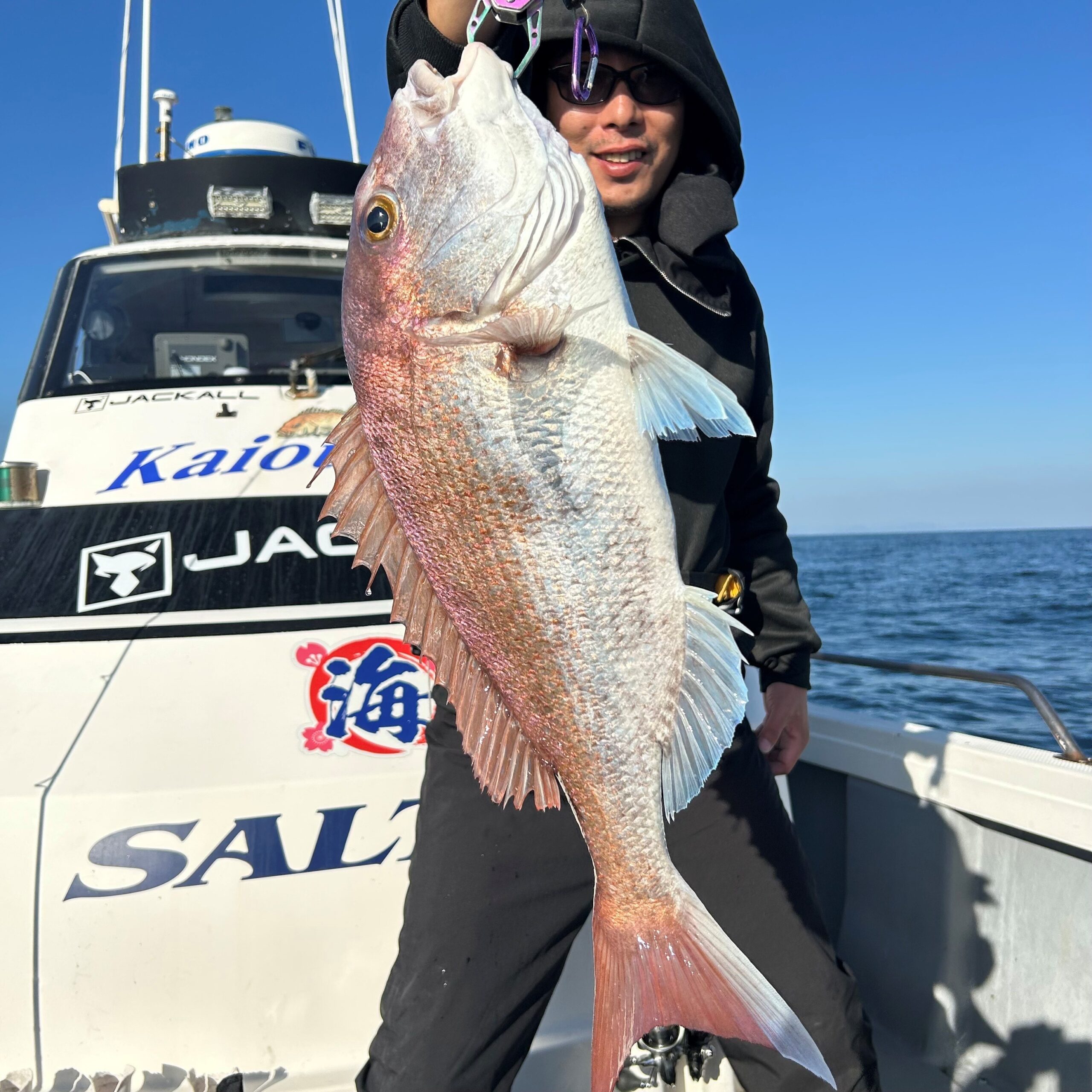 2025.11.15(若潮) 釣果報告 2025/11/17 2025釣果報告 海桜丸船長日記。 本日は3名のお客さんと姫島沖へ。 波・風共に穏やかで天気も良く、最高の釣り日和でした☀️ ポイント到着が上げ潮の潮止まりと重なりましたが、ポツポツと当たりました。 本日は活きエビでのテンヤに良く当たりました。 潮行きがあまり良くない時は活きエビでのテンヤが良いかも? サワラキャスティングもやってみましたが、ベイトが見つからずに不発で終わりました。 泣きのラスト流しで60㎝の真鯛に5キロupのハマチが釣れ終了。 乗船者の皆さんお疲れ様でした。 本日も海桜丸をご利用頂きありがとうございました🙇♂️