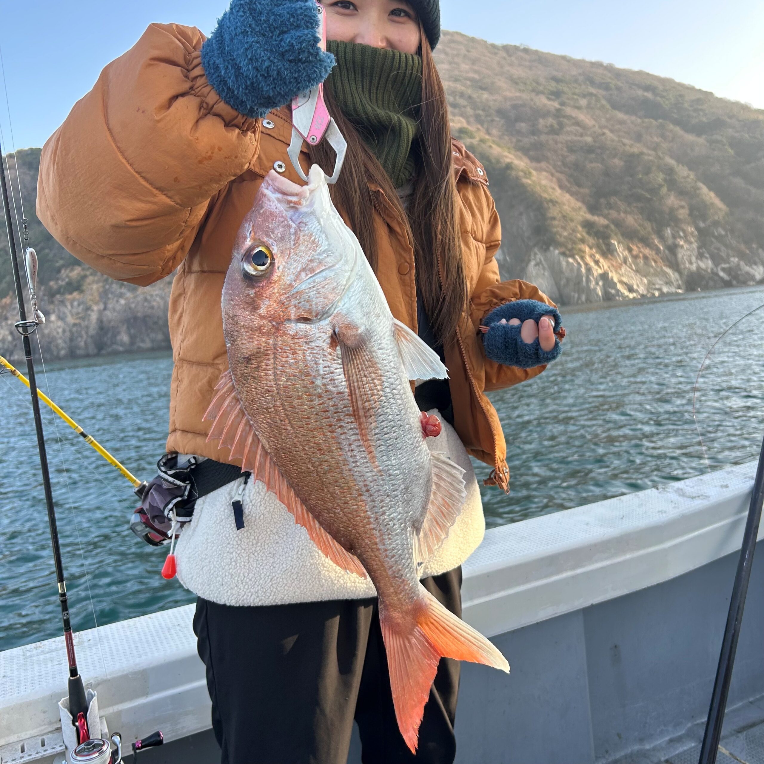 仲良し家族のママにも60㎝upの良型真鯛がヒットしました。